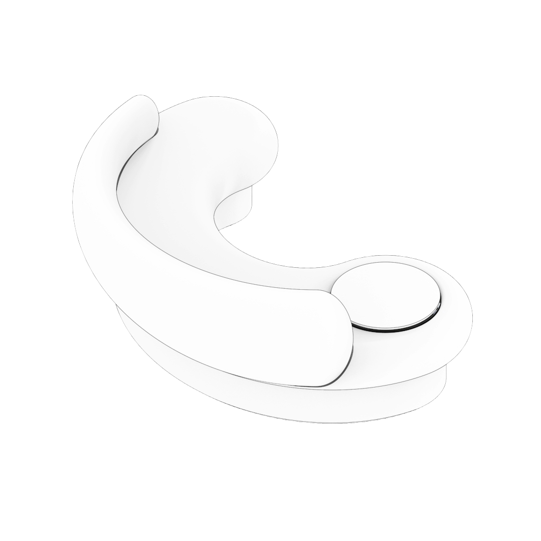 It is inspired by nature, using biomorphic lines to create an embracing, intimate cocoon. Interconnected plush spheres define a distinct "space within a space", establishing a new standard for ergonomic warmth and privacy.