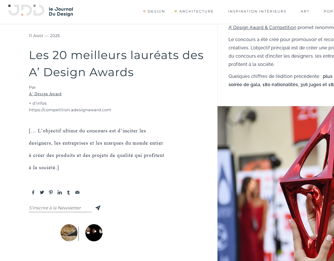 Les 20 meilleurs lauréats des A’ Design Awards